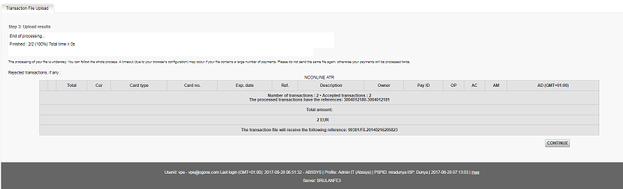 | Loaded | The file is loaded into our process module, but at least one of the payments have not yet been sent to the acquirers/banks |