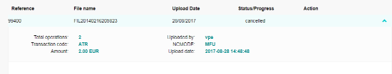 | Cancelled | The file is cancelled after the ‘Check’ step |